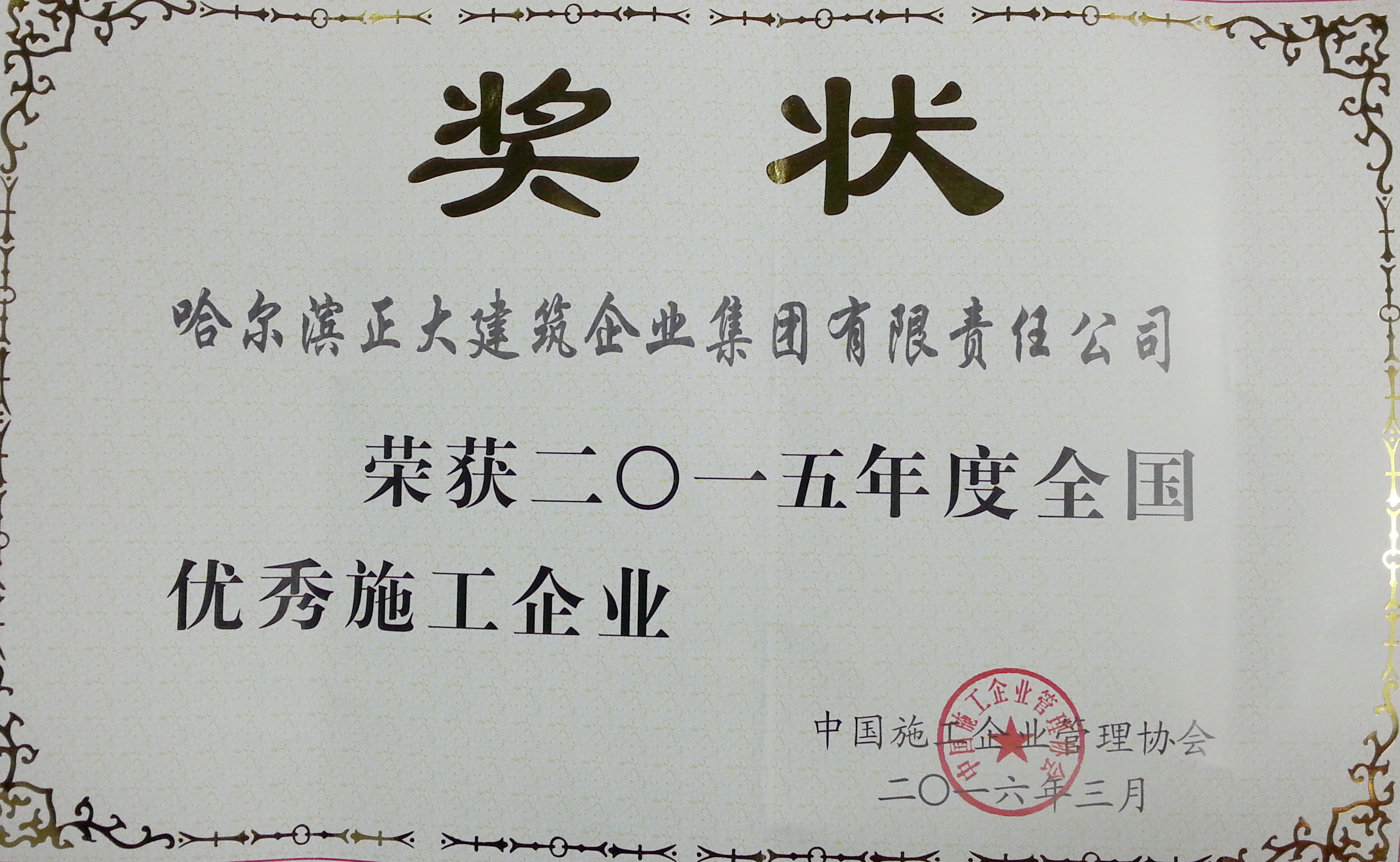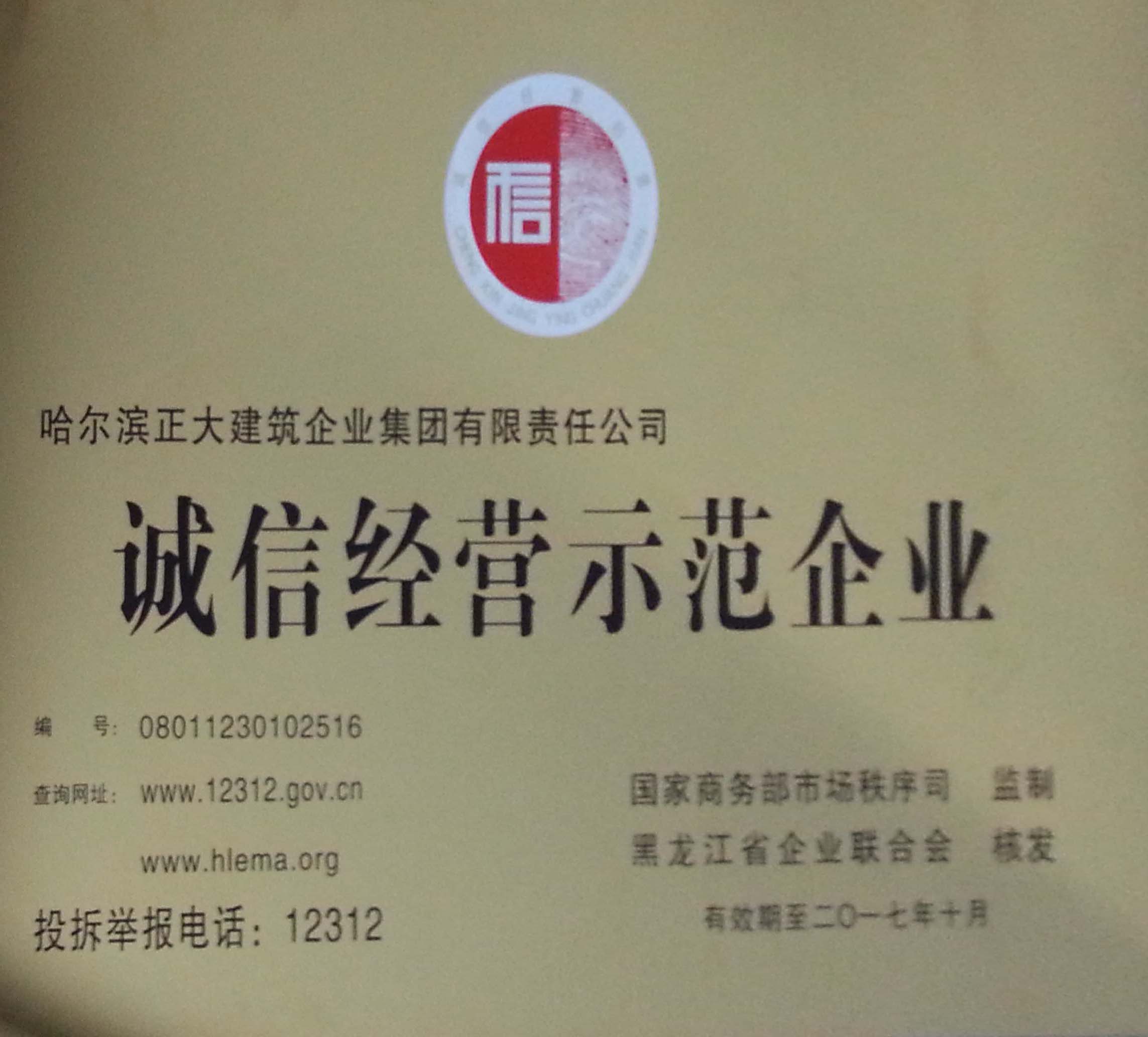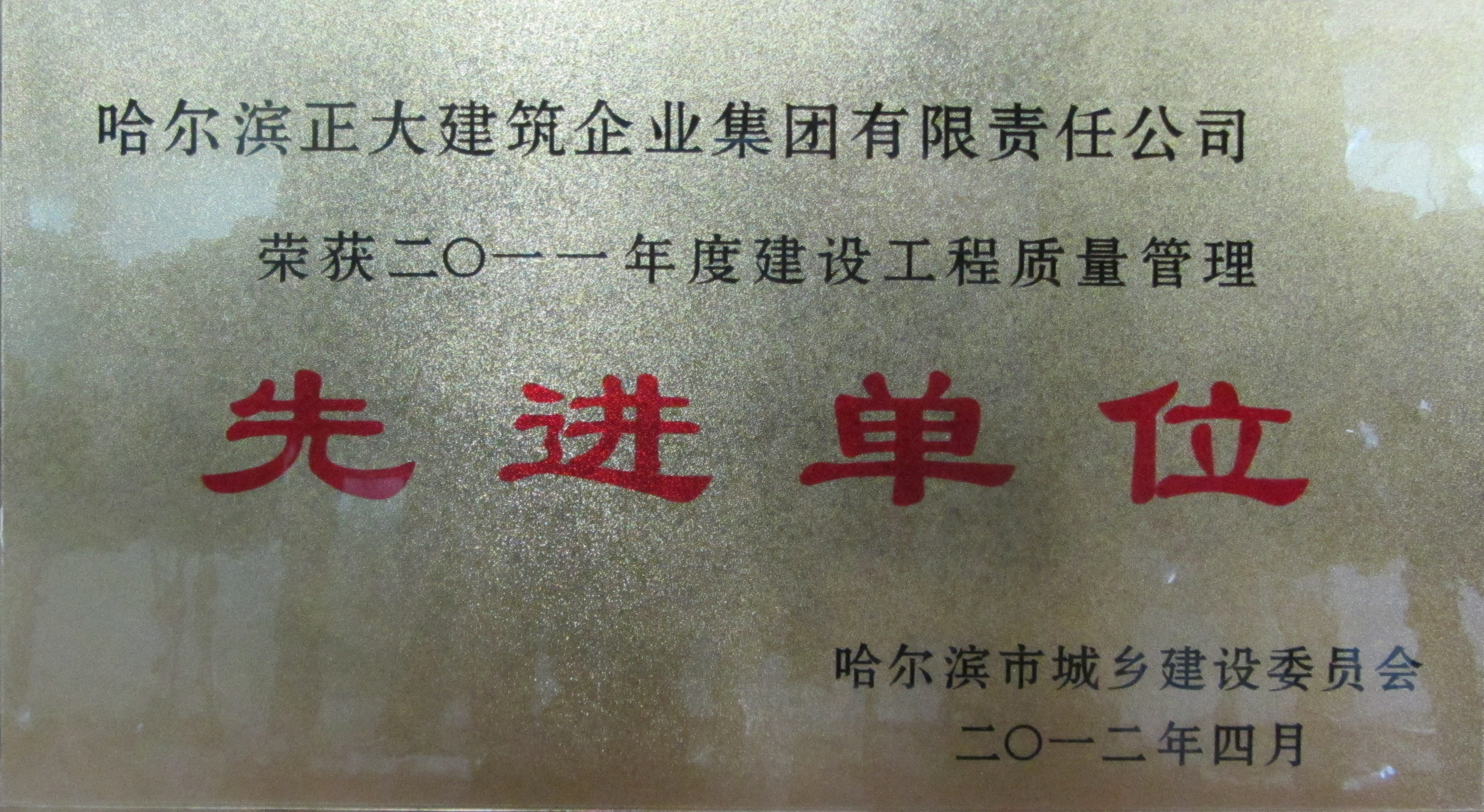 公司成立至今,先后被評為全國優(yōu)秀施工企業(yè)、全國用戶滿意施工企業(yè),全國首批建筑業(yè)誠信施工企業(yè),全國“安康杯”競賽優(yōu)勝企業(yè),全國工程建設(shè)質(zhì)量管理優(yōu)秀企業(yè)、中國建設(shè)系統(tǒng)企業(yè)信用信譽(yù)AAA級單位,并多次榮獲省、市“先進(jìn)單位”、“優(yōu)秀單位”、“重合同守信用單位”、“黑龍江省優(yōu)秀施工企業(yè)”、“黑龍江省用戶滿意施工企業(yè)”等光榮稱號。并連續(xù)獲得哈爾濱市質(zhì)量管理先進(jìn)單位、黑龍江省質(zhì)量管理先進(jìn)企業(yè)、黑龍江省質(zhì)量管理獎(jiǎng)、黑龍江省“安康杯”優(yōu)勝企業(yè)等榮譽(yù)。并在建筑施工現(xiàn)場環(huán)保管理上創(chuàng)造了一項(xiàng)“中國企業(yè)新記錄”。
